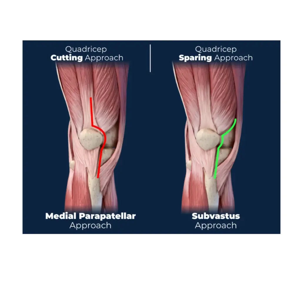 This technique avoids cutting the quadriceps tendon. Instead, the surgeon works underneath the vastus medialis muscle—hence the term subvastus.